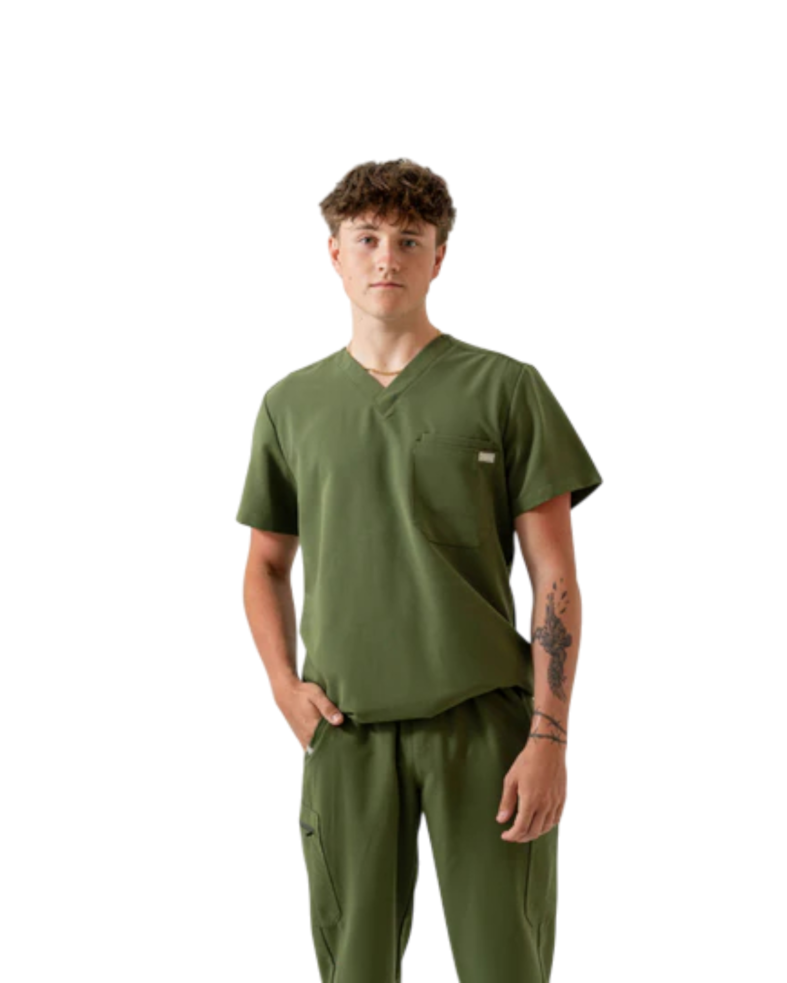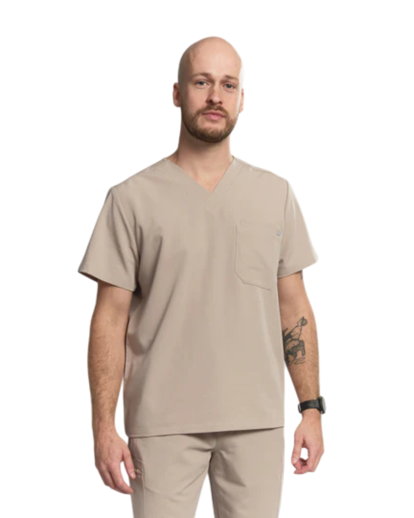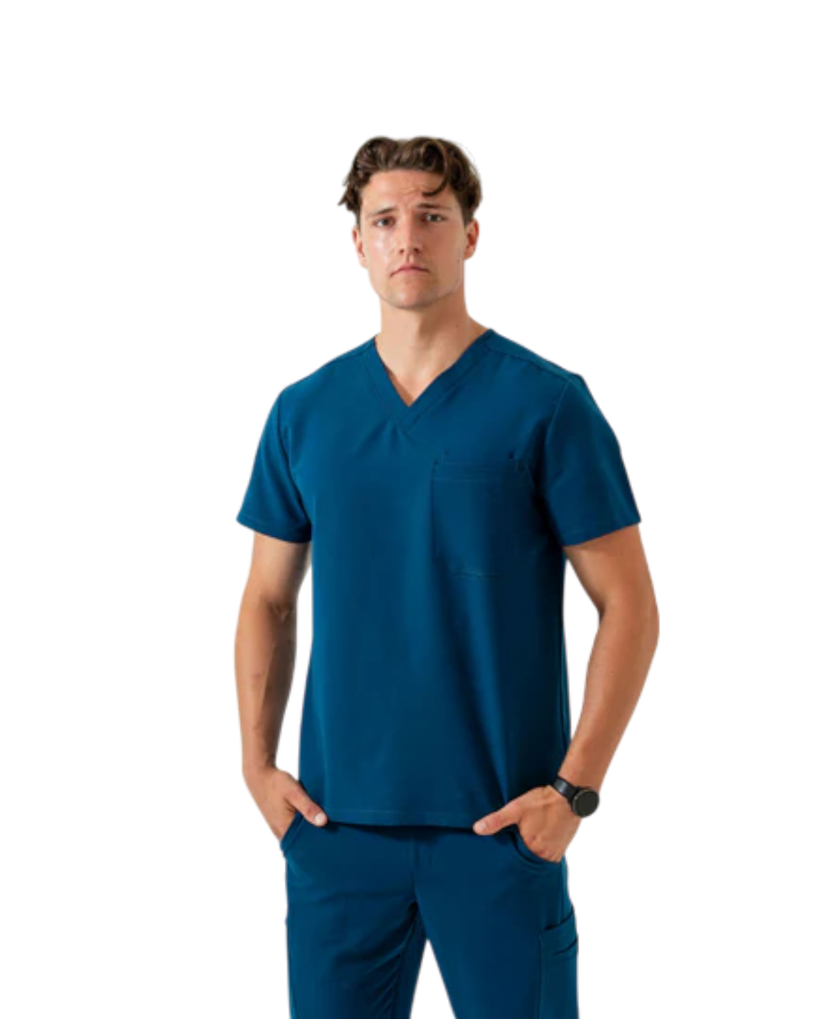Stay comfortable and stylish all day long with this modern top. Its fitted cut and two practical pockets make it an everyday essential.