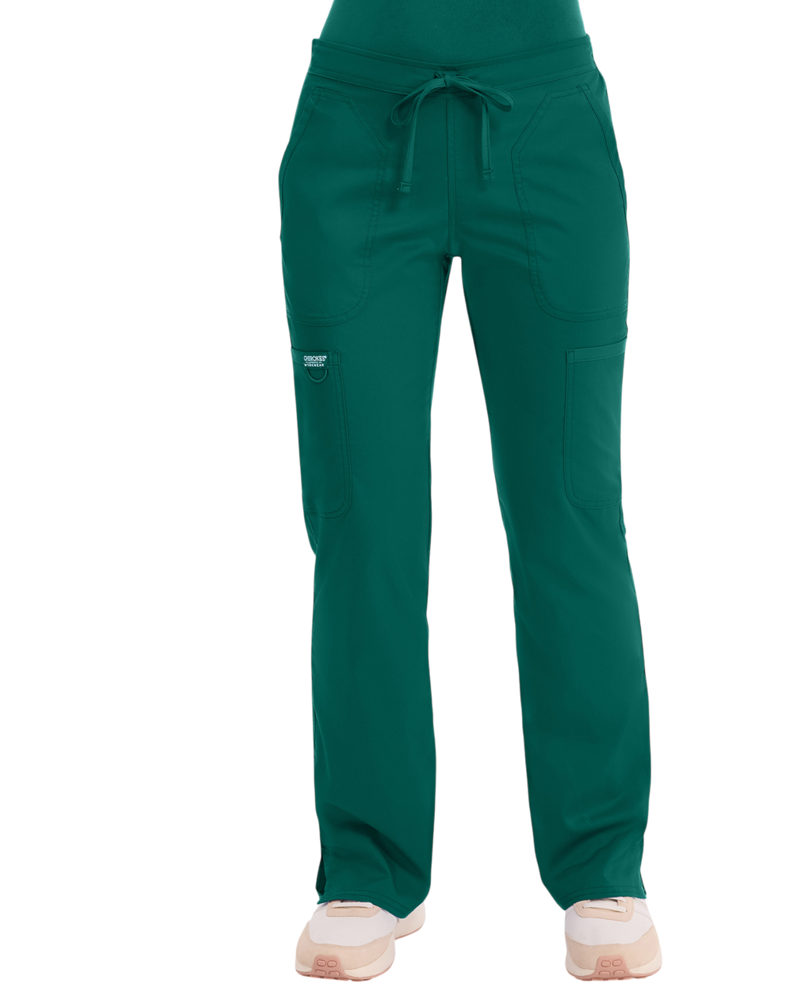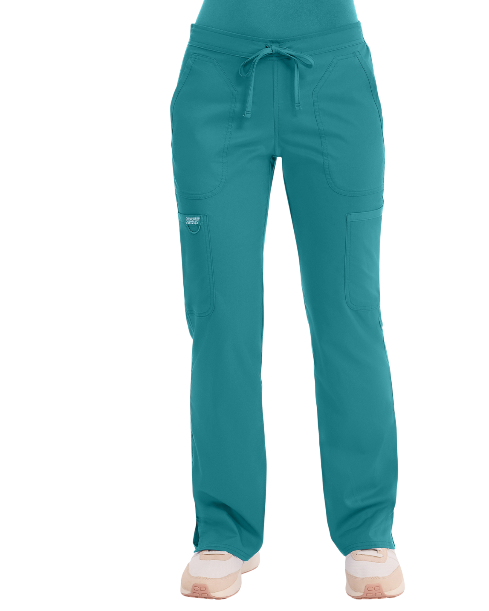 Cherokee Revolution Collection: A Modern Classic fit, mid rise, straight leg pant features a comfort-fit knit waistband reinforced with inside elastic for extra support. Also featured are front patch pockets, a cargo pocket, logo label with bungee loop, back pocket, knee seams and side vents.