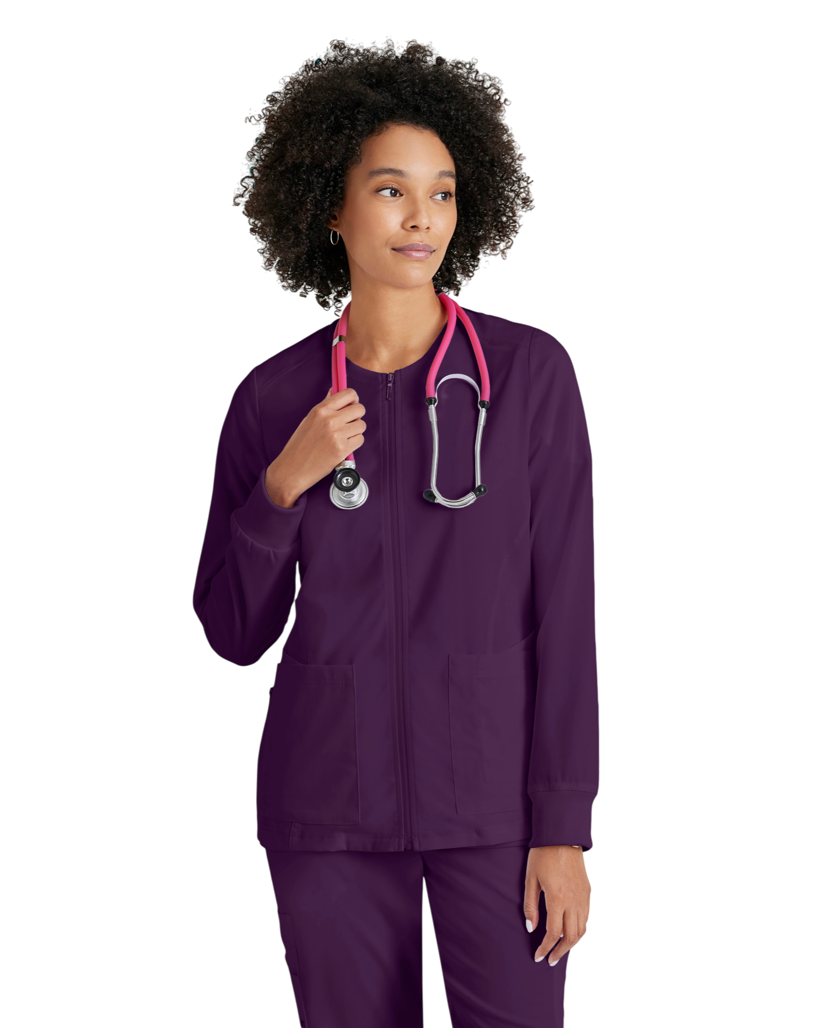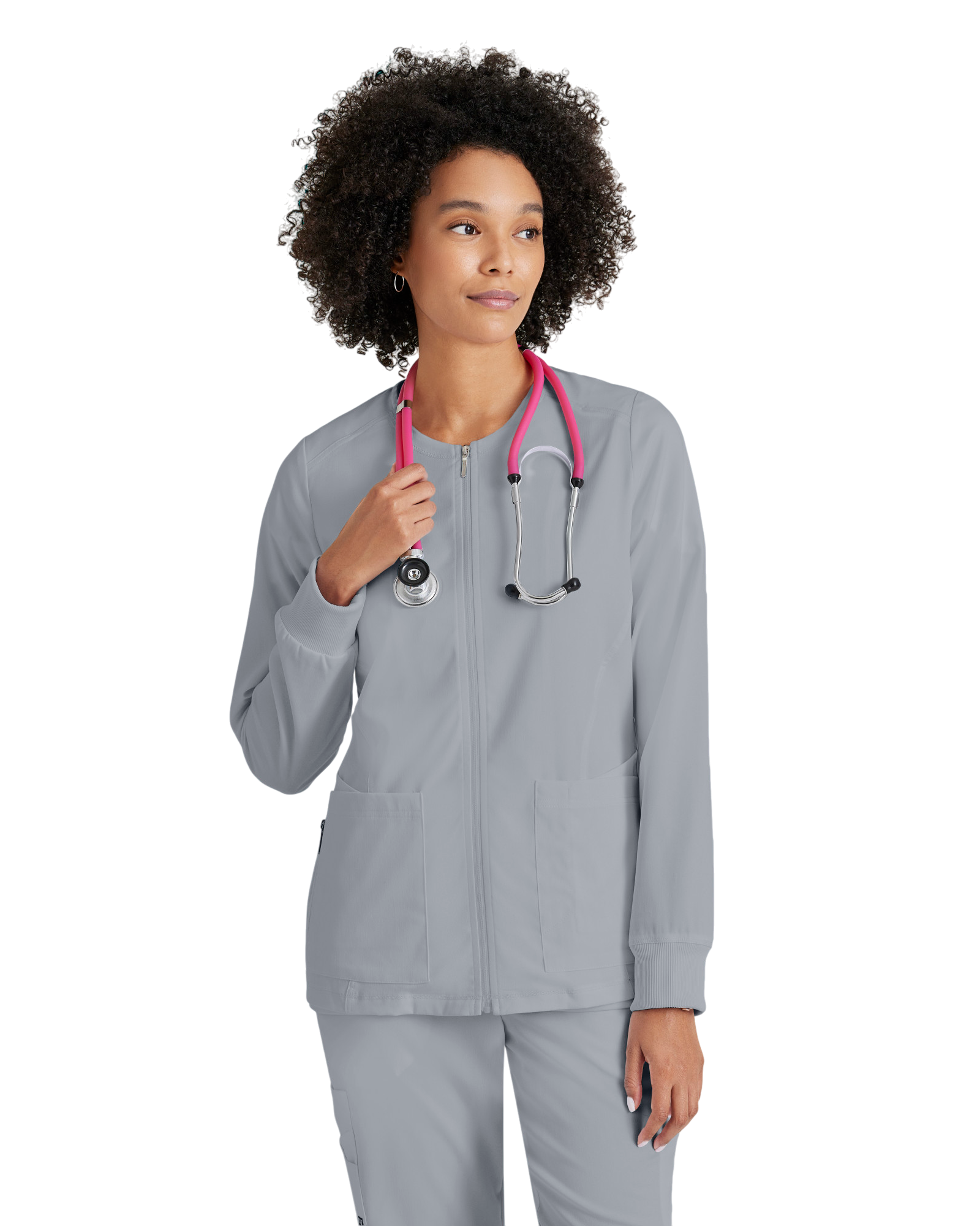 Women's antimicrobial warm-up scrub jacket Grey's Anatomy Spandex Stretch #GRSW873X (2XL&+)