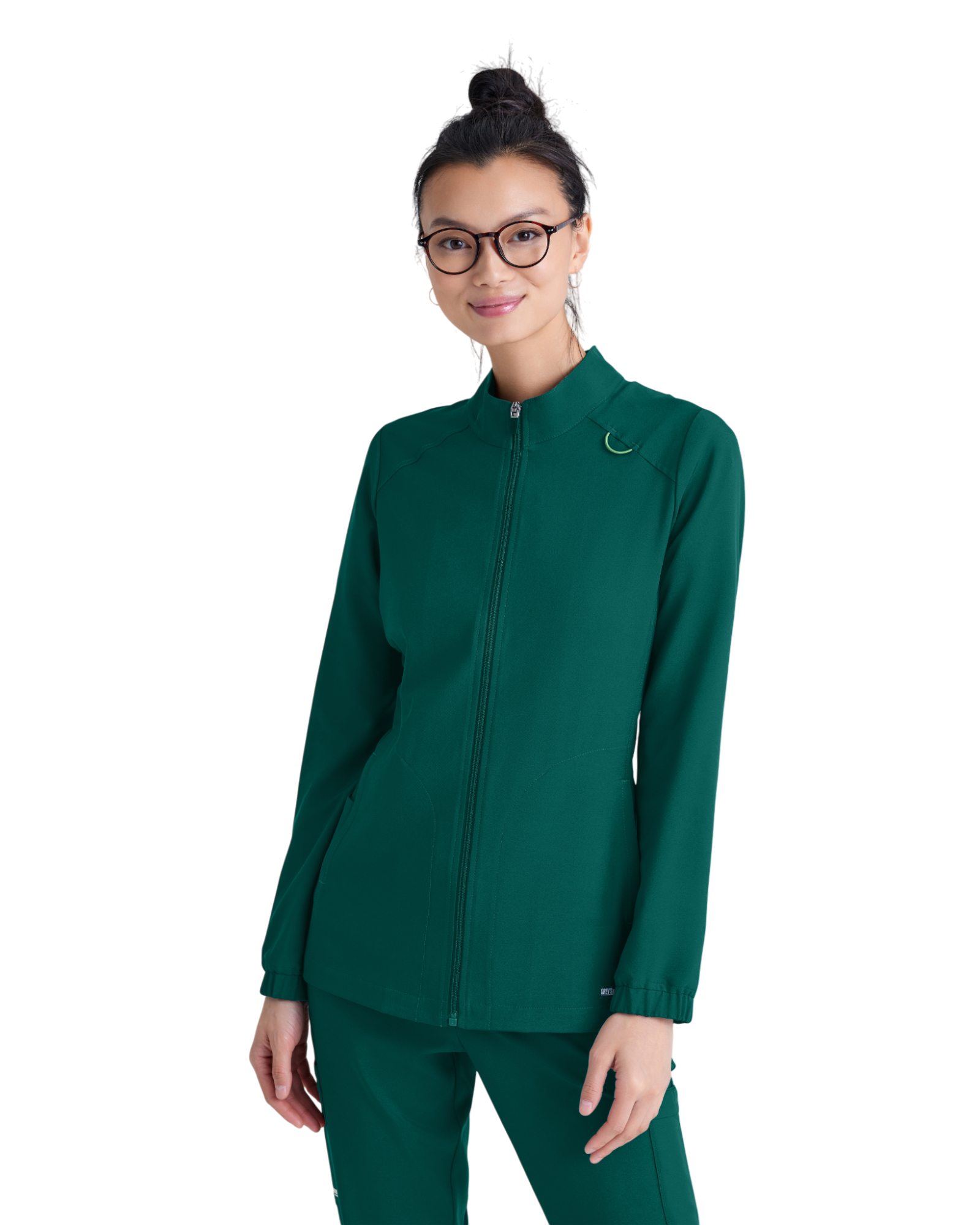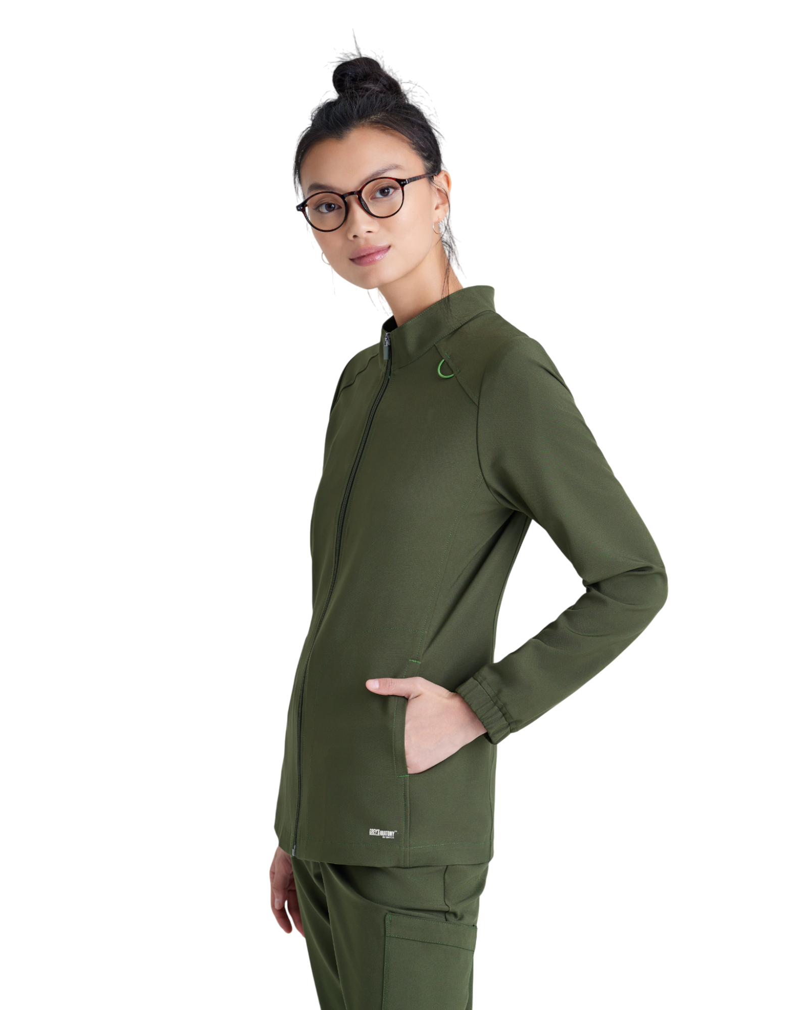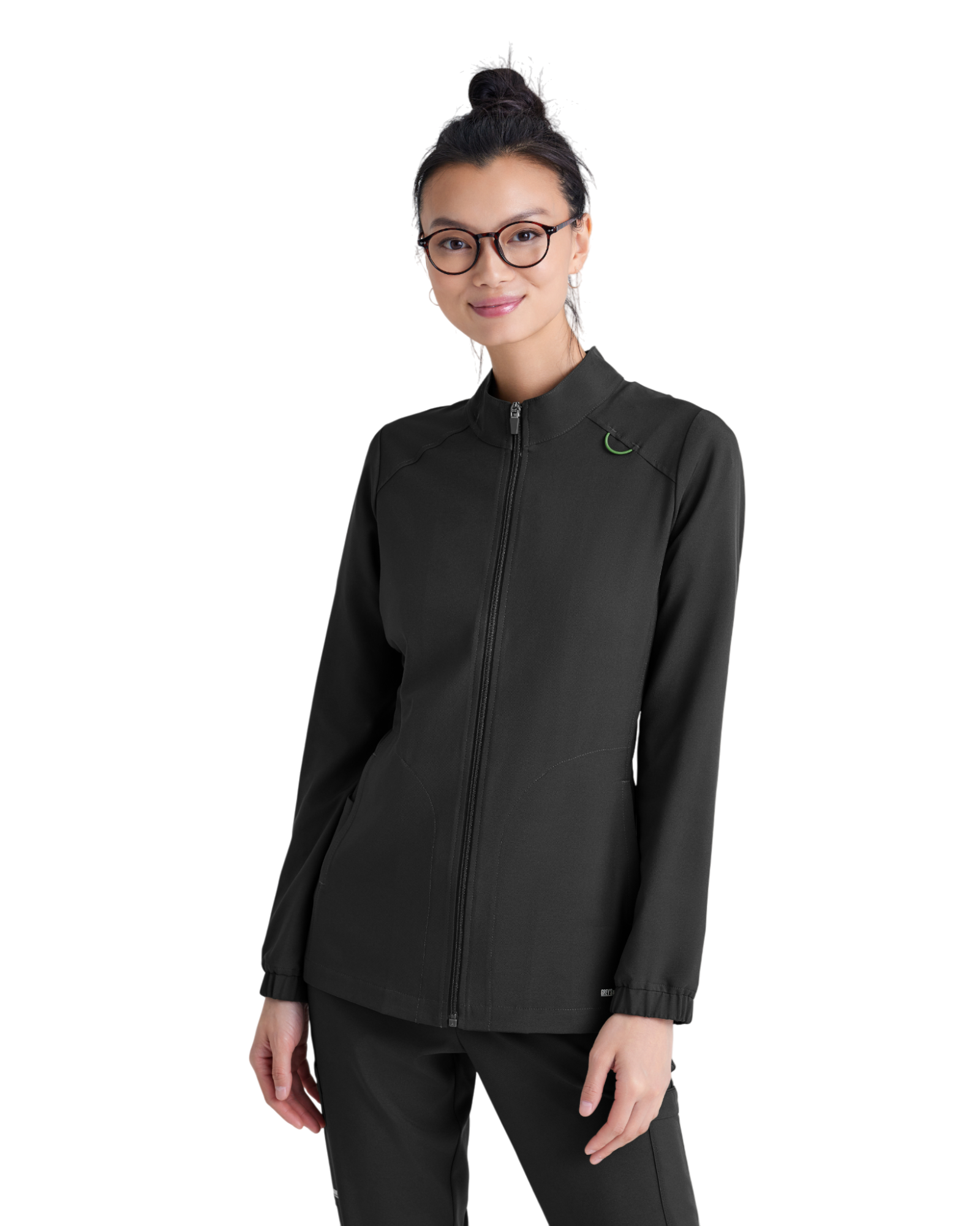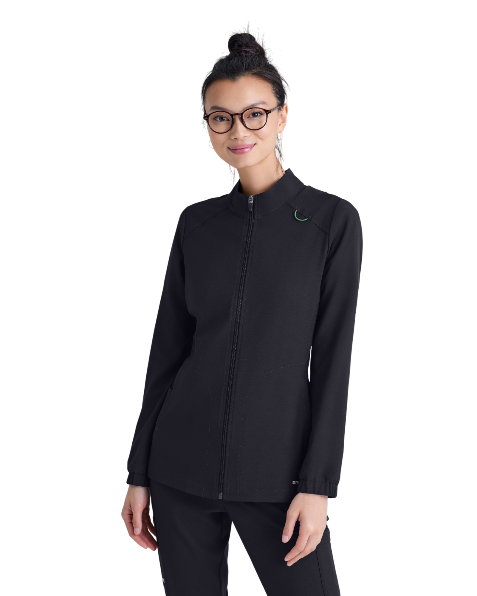 Complete your favorite Grey's Anatomy by Barco Evolve scrub set with the athleisure-inspired Virtue warmup. Featuring two spacious pockets and a signature green badge loop to keep important items close by. Made with recycled polyester and CiCLO® technology, the fabric is soft, stretchy, and breathable for all-day comfort.