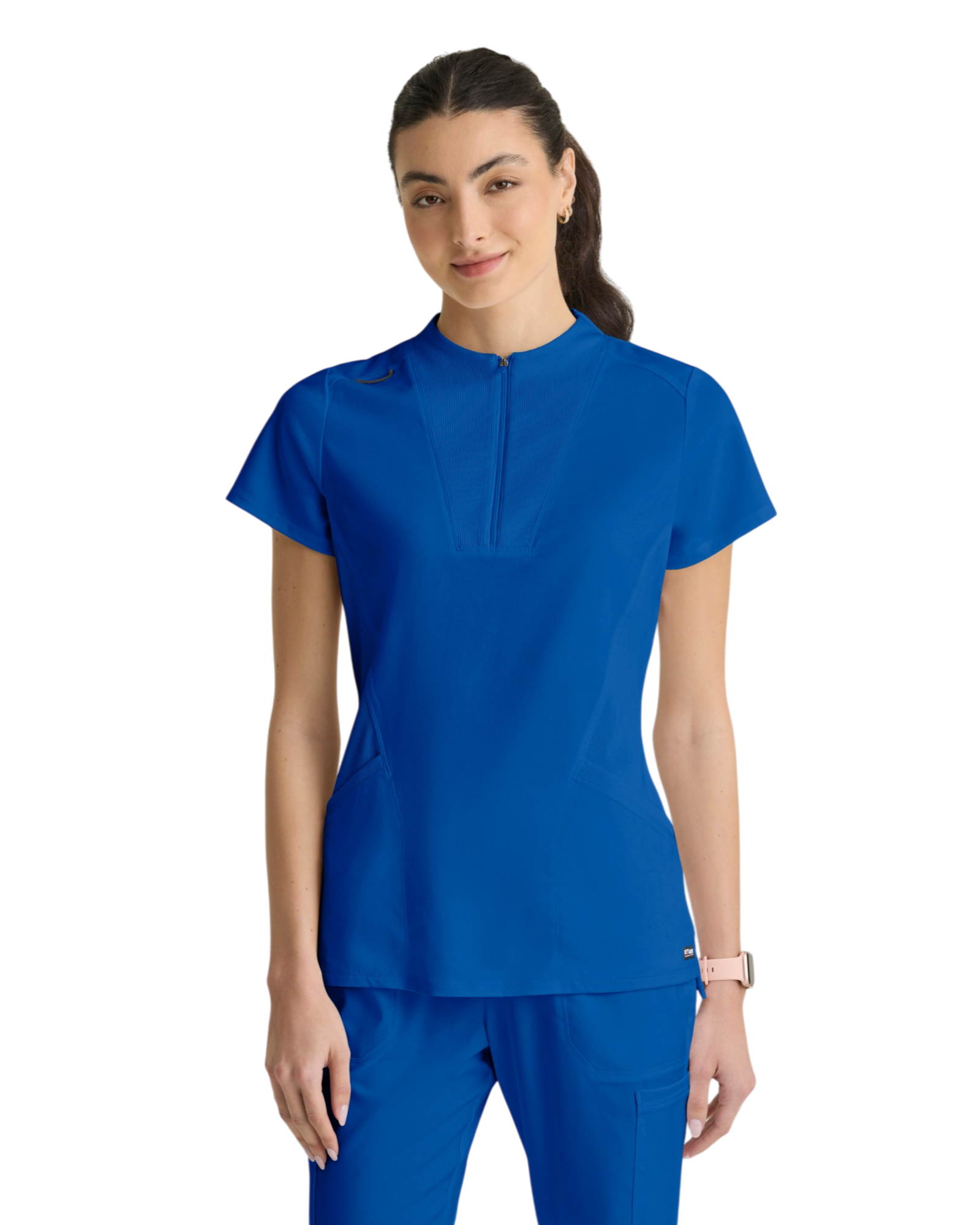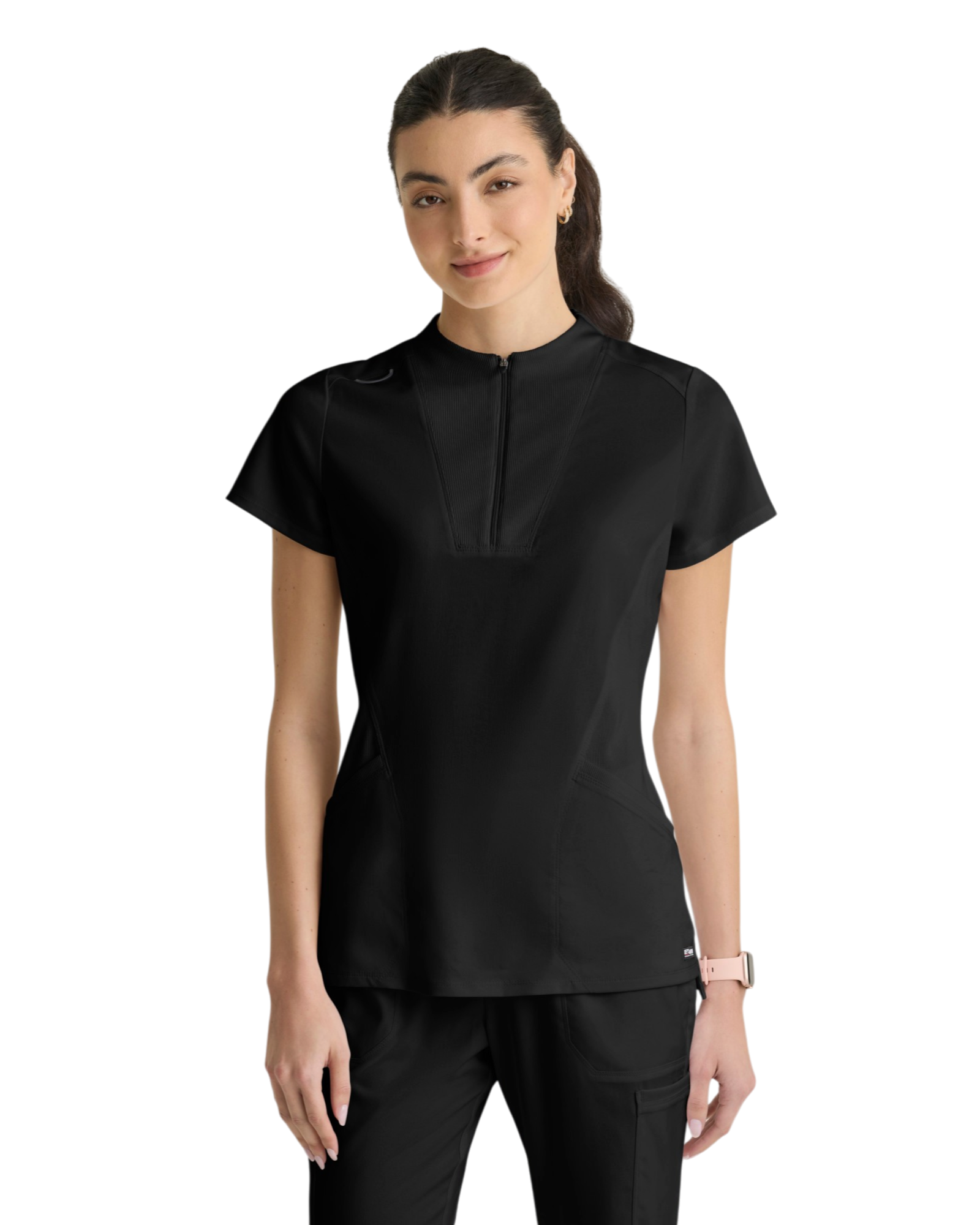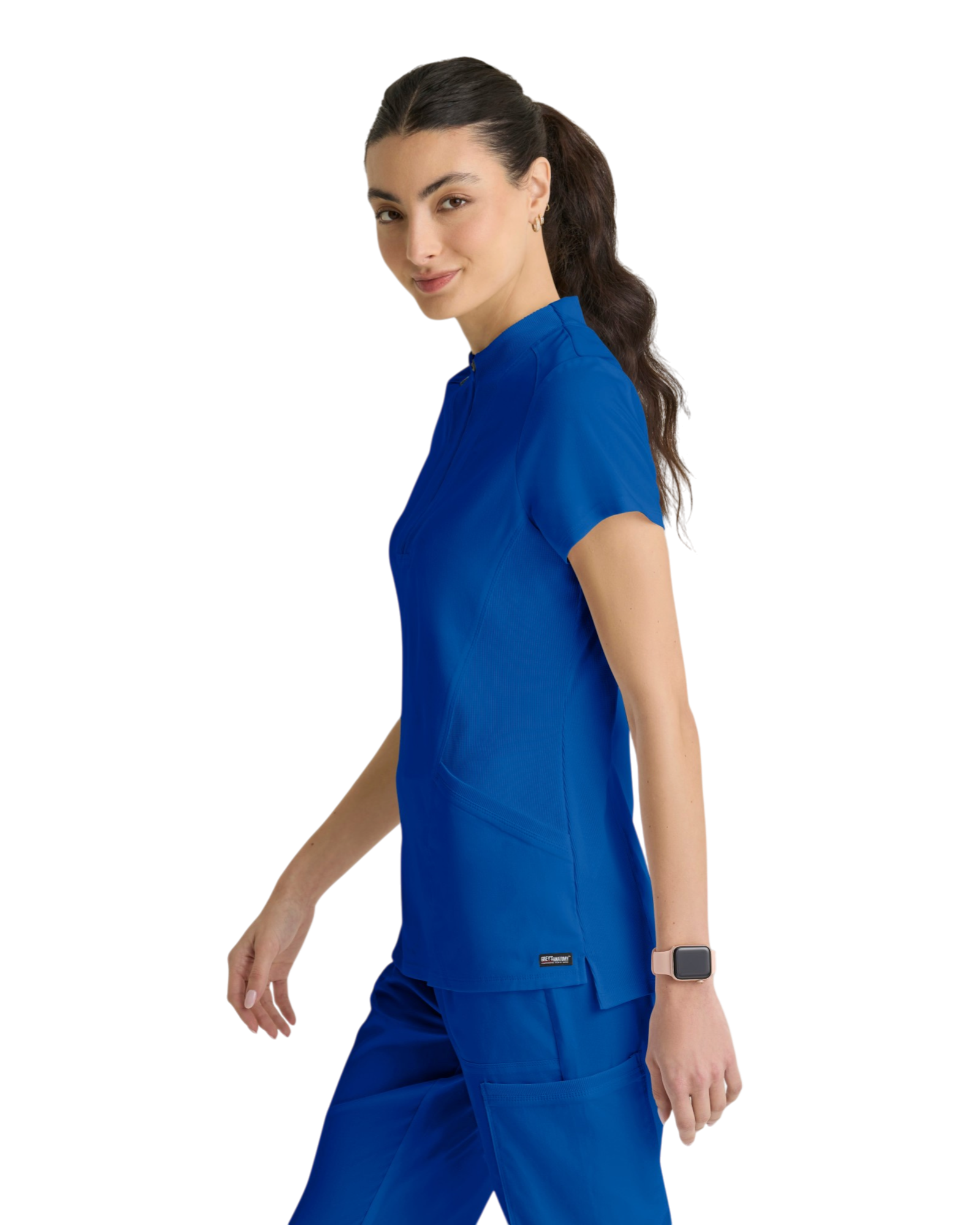 Raffiné. Le haut Kristi offre une touche moderne et élégante grâce à son encolure zippée, ses empiècements en maille côtelée et son tissu extensible et doux qui accompagne vos mouvements. Infroissable et parfaitement ajusté, il est destiné aux professionnels qui font preuve d'assurance et d'attention.