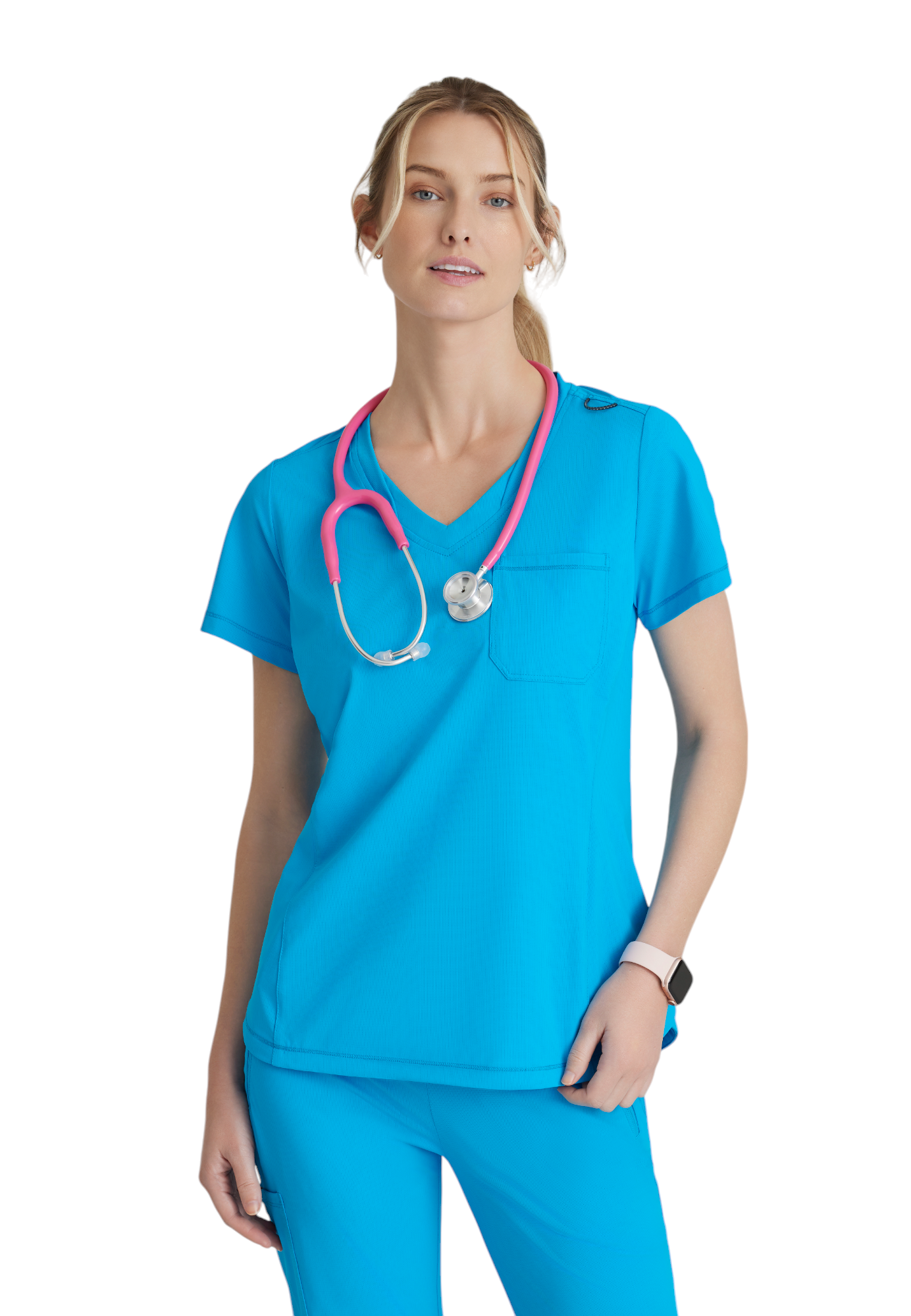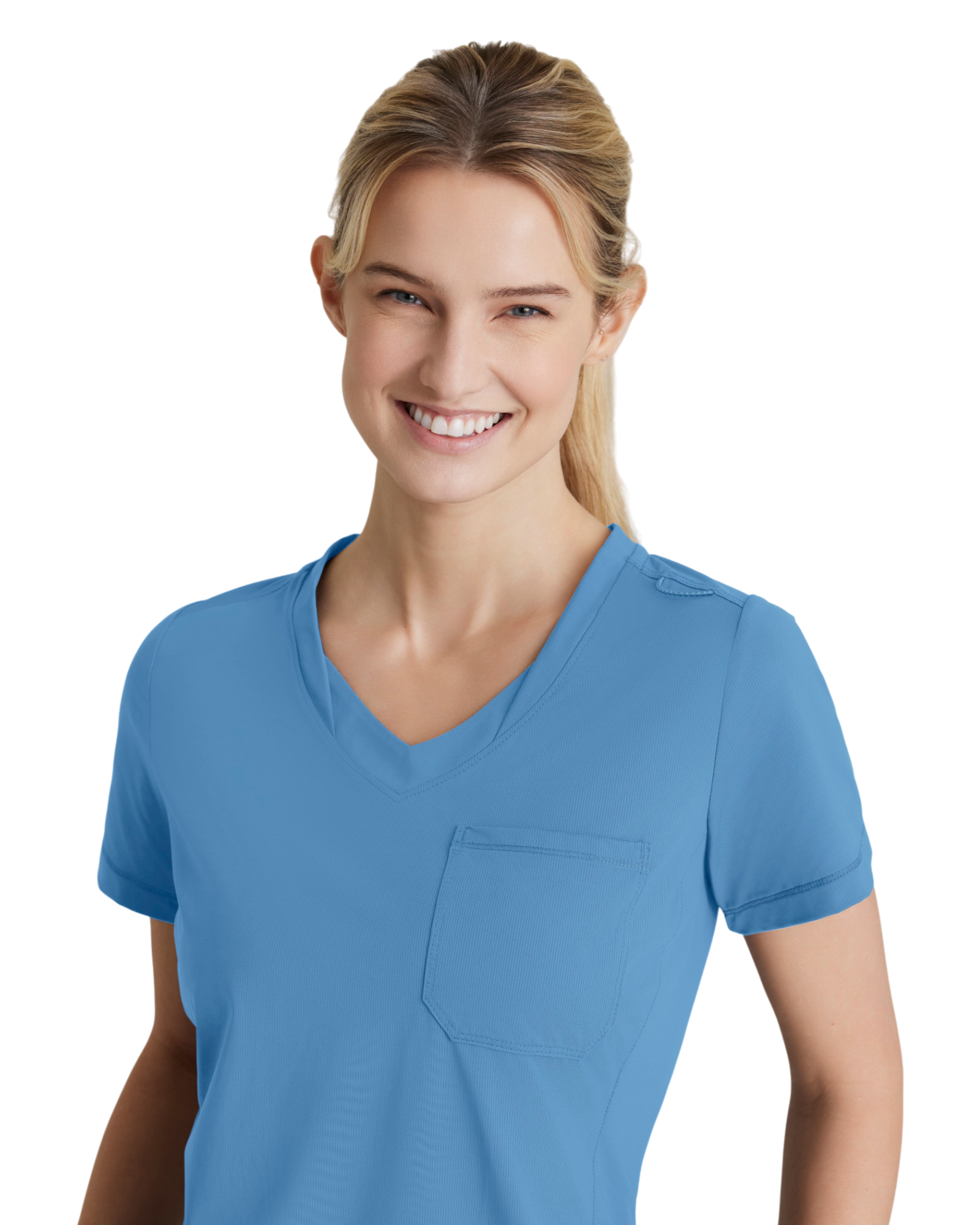 Style athlétique et confort avec le haut en tricot Flow de Skechers Slip-ins by Barco. Doté d'une encolure incurvée et de coutures princesse à l'avant et à l'arrière pour une silhouette flatteuse, il comporte une poche plaquée sur la poitrine et une boucle de badge à l'épaule pour plus de fonctionnalité. Avec un effet tulipe superposé à l'ourlet arrière et un ourlet bas pour une touche élégante, ce haut est fabriqué en tricot confort extensible à 360°, ce qui permet d'évacuer l'humidité.